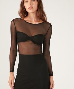 Women’s Outerwear Perfect Stranger Twisted Mesh Long Sleeve Mini Dress Black
