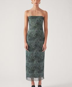 Women’s Dresses Perfect Stranger Rosetta Off Shoulder Long Sleeve Maxi Dress Green | Dark Green