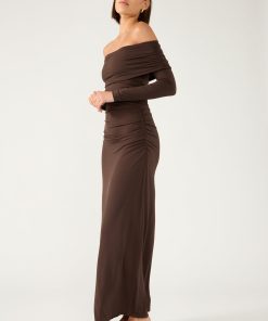 Women’s Dresses Perfect Stranger Rosetta Off Shoulder Long Sleeve Maxi Dress Ash Brown | Brown
