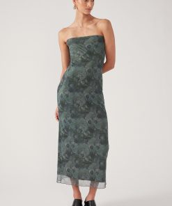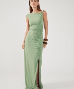 Women’s Dresses Perfect Stranger Rosetta Off Shoulder Long Sleeve Maxi Dress Green | Dark Green