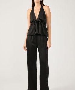 Women’s Matching Sets Perfect Stranger Giulia Long Line Tie Back Cupro Top Black | Black