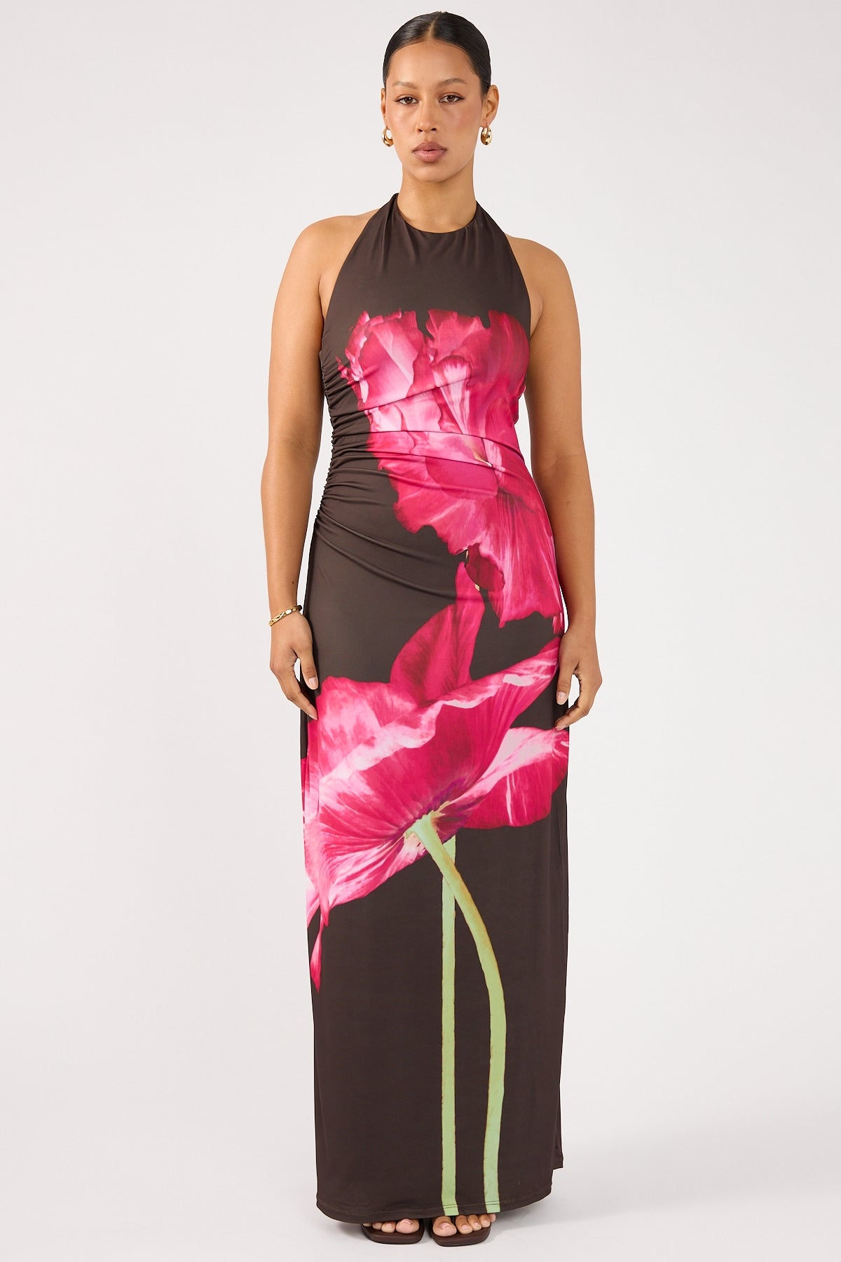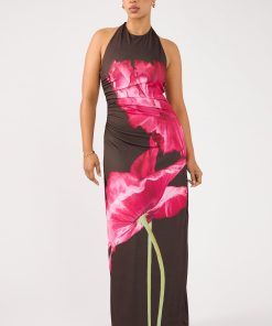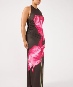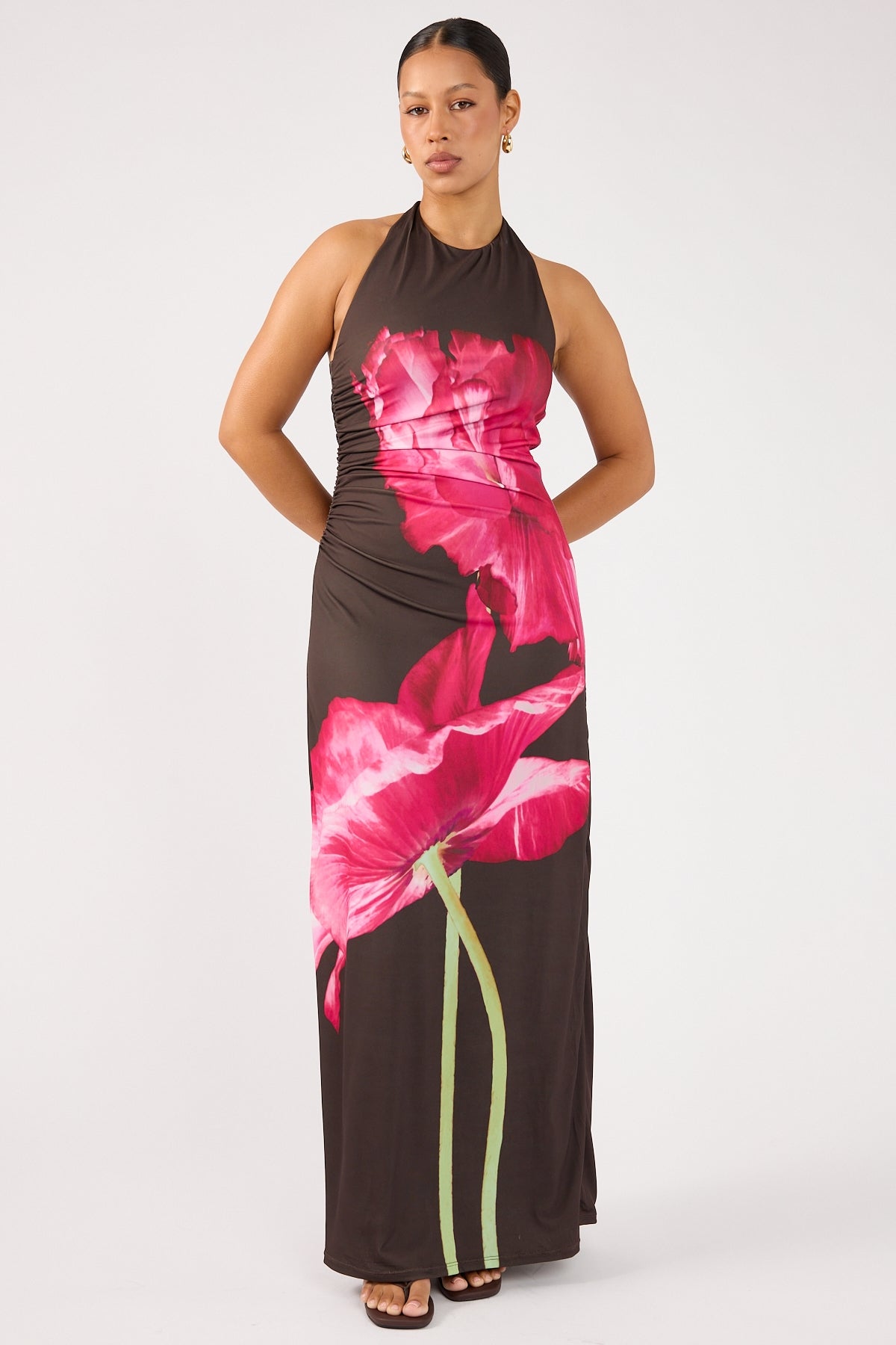 Women’s Dresses Perfect Stranger Full Bloom High Neck Maxi Dress Brown Print