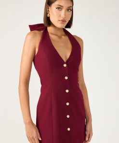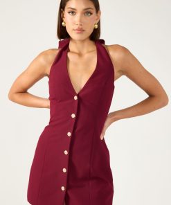 Women’s Dresses Perfect Stranger Halter Suiting Vest Mini Dress Burgundy | Burgundy