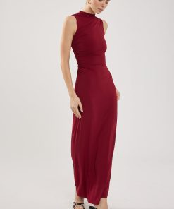 Women’s Dresses Perfect Stranger Rosewood High Neck Maxi Dress Burgundy | Burgundy