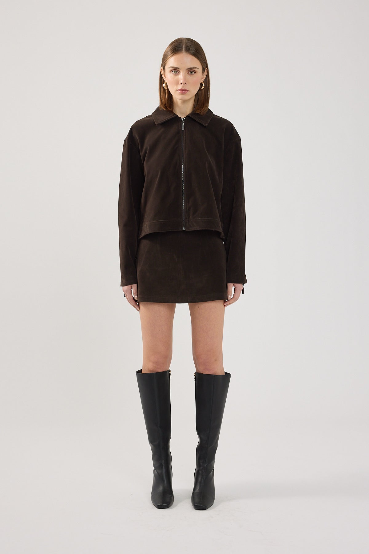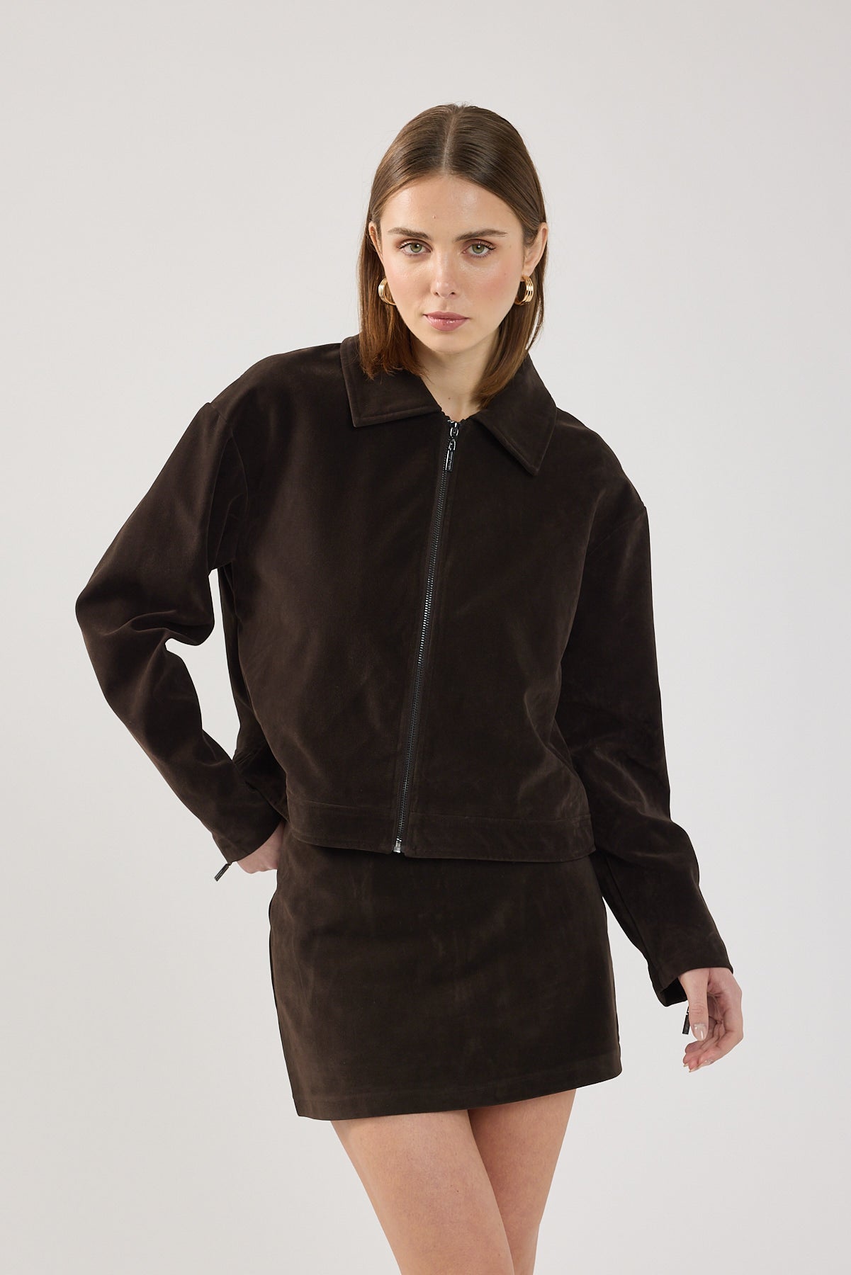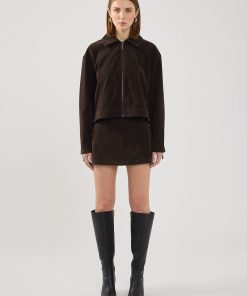 Women’s Outerwear Perfect Stranger Kandice Pu Suede Zip Up Jacket Brown | Brown Suede
