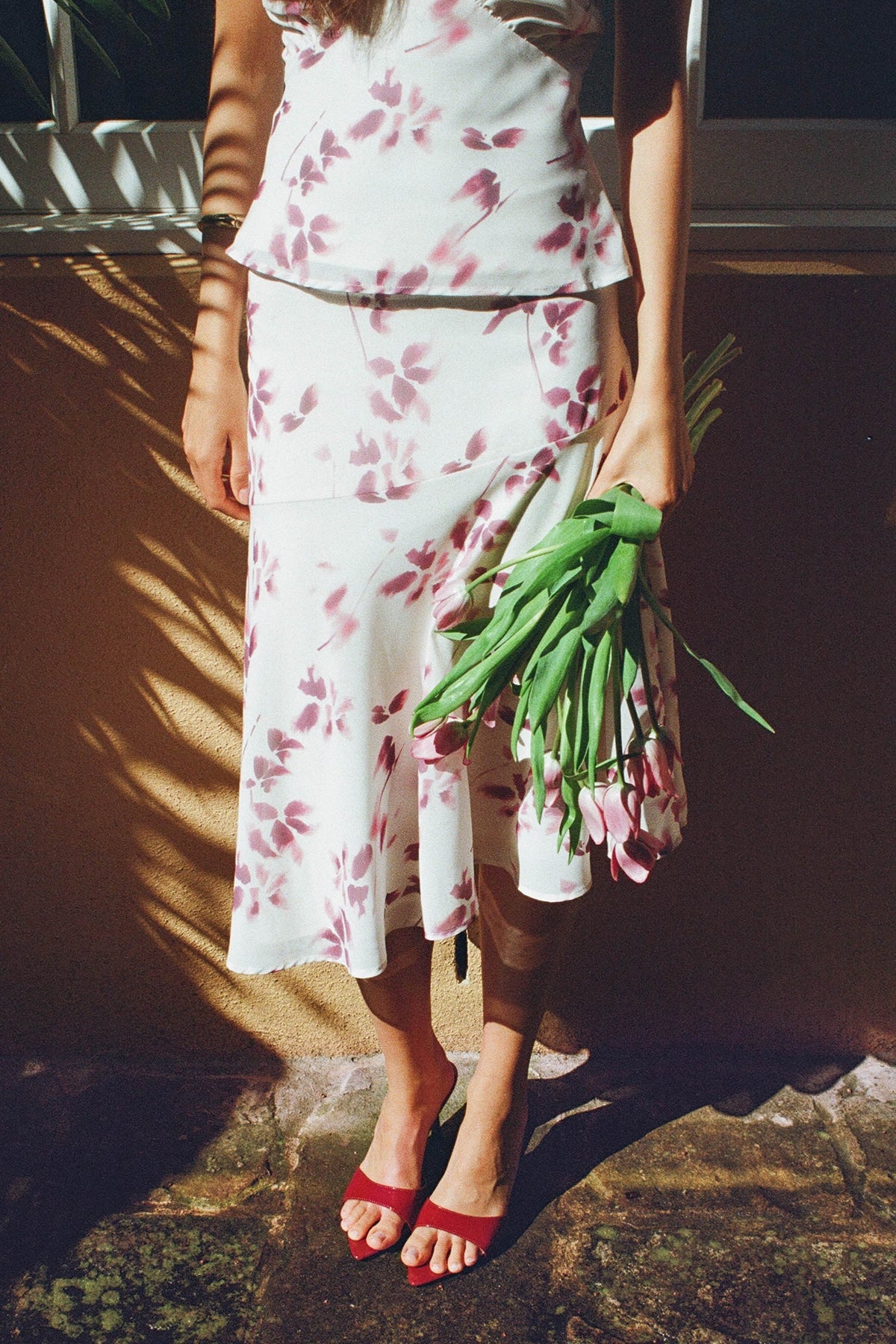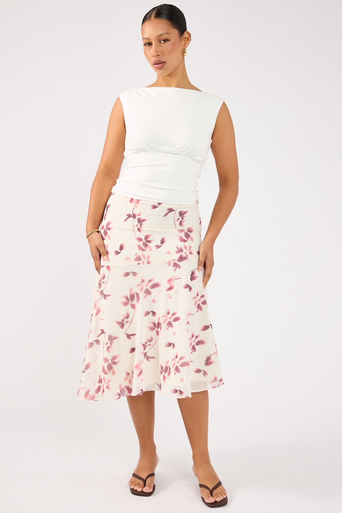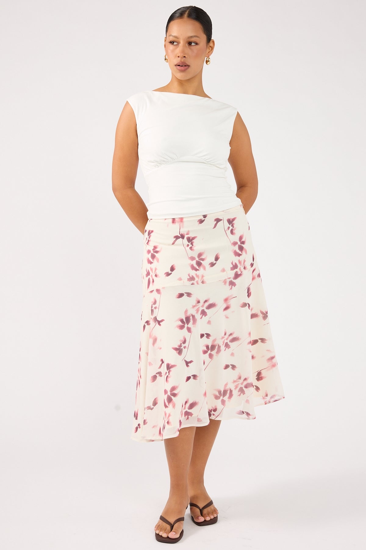 Women’s Perfect Stranger Charlotte Asym Midi Skirt Burgundy Print